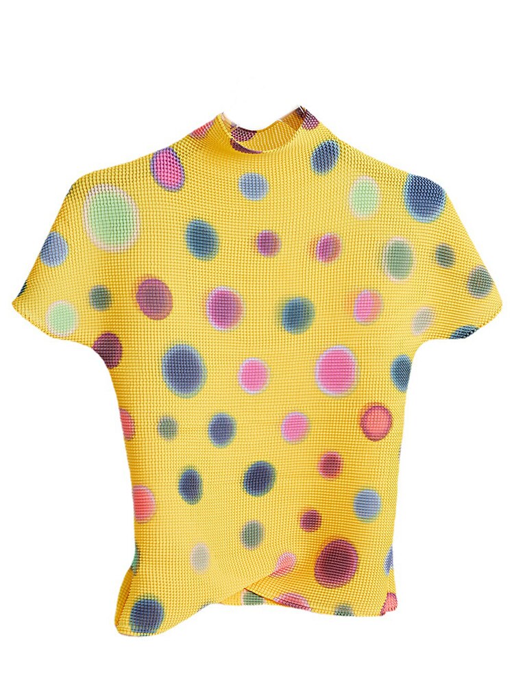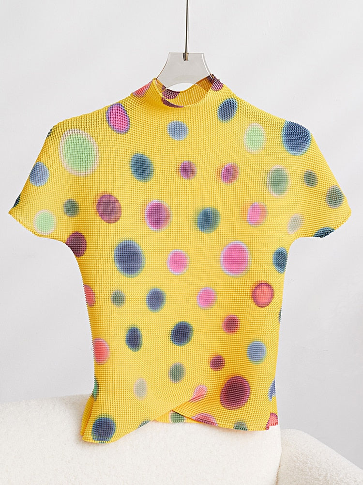Contrast Color Pleated T-shirt For Women