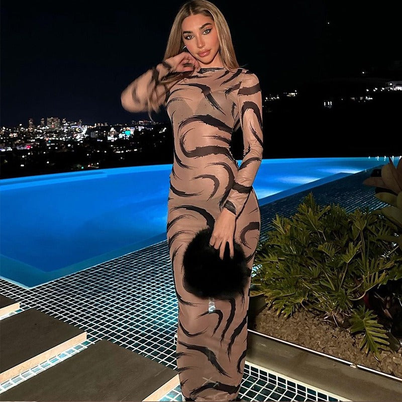Long Sleeve O-Neck Bodycon Midi Dresses For Women