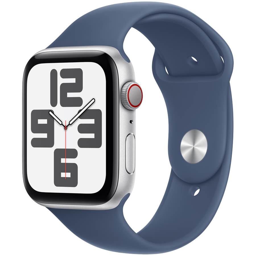 Apple Watch SE GPS + Cellular 44mm Silver Aluminium Case with Denim Sport Band - S/M,Model A2724