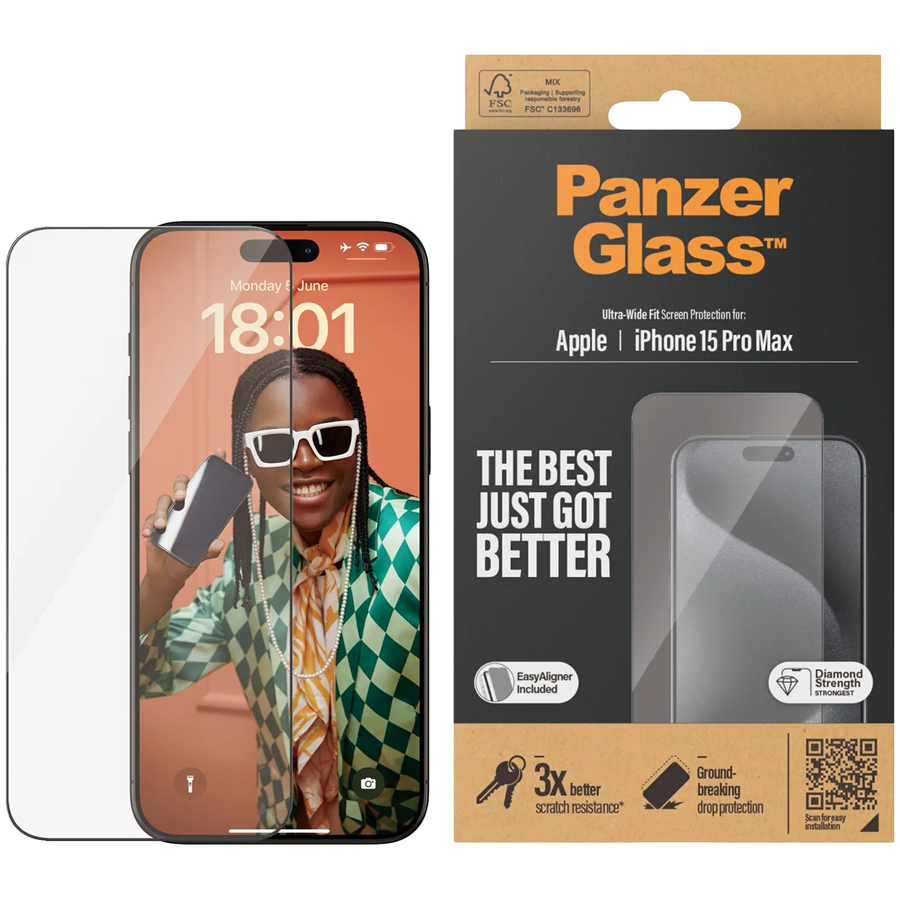 PanzerGlass Screen Protector iPhone 15 Pro Max | Ultra-Wide Fit w. EasyAligner