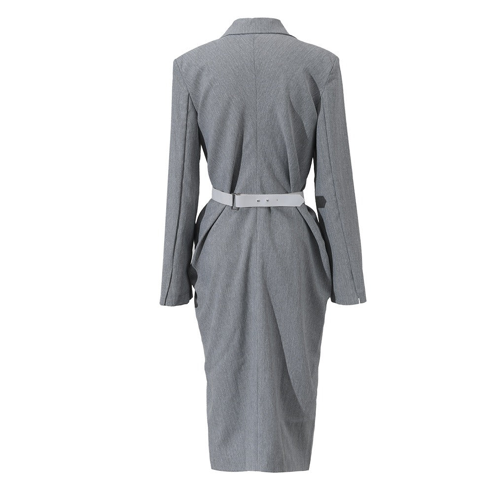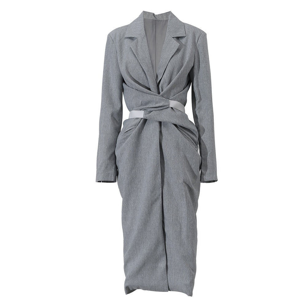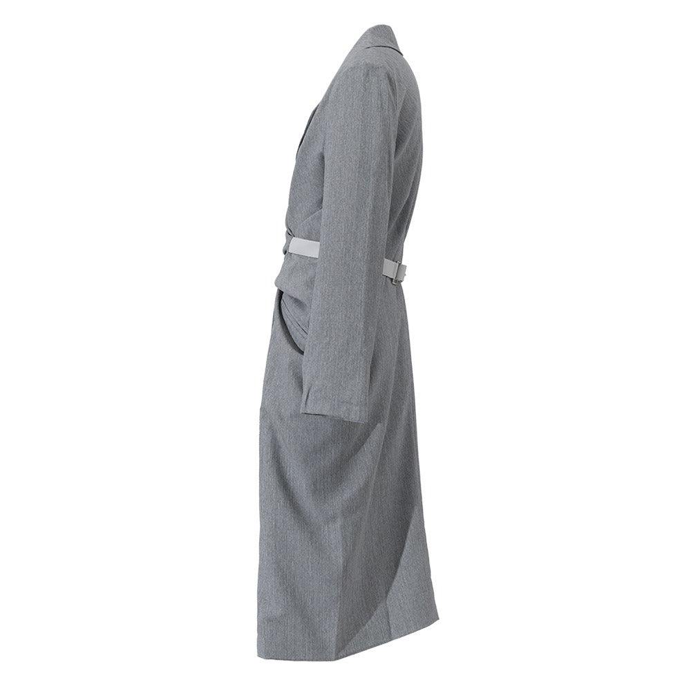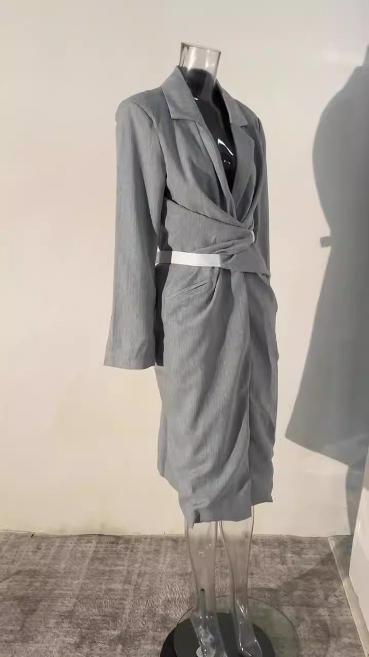 Women Grey Knot Belted Long Dress